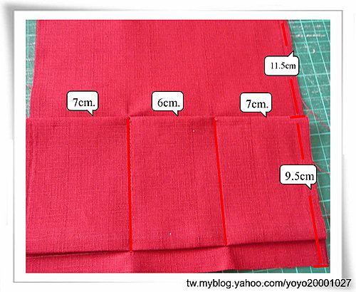 與B布於中間車縫二條線(記得距離下方1cm)整燙備用