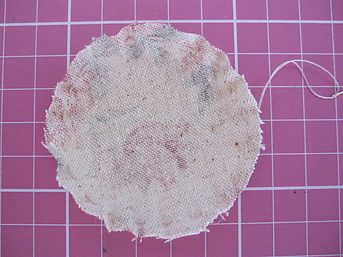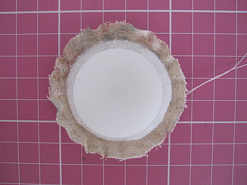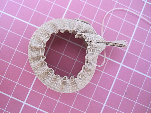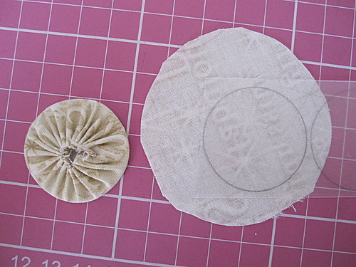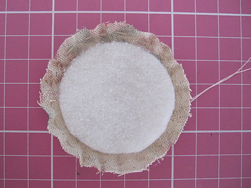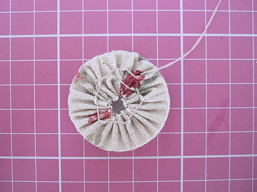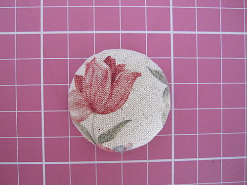 縮縫一圈後,翻回正面,拿剛縫好的包釦,稍為比對一下有没有差不多大小