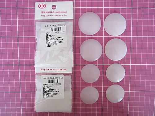 左邊是喜佳的pp包釦:上4mm(5入-75元);中3.5mm(5入-65元);下3mm(10入-75元)