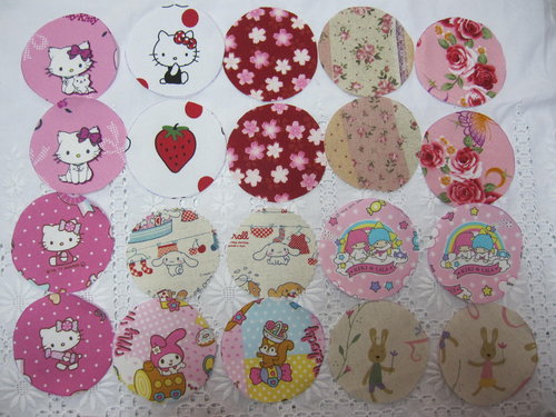 左邊是在用做髮束的台灣包釦,有一隻腳,要用鉗子先剪掉,價格比較便宜,較像漢堡,也是可愛