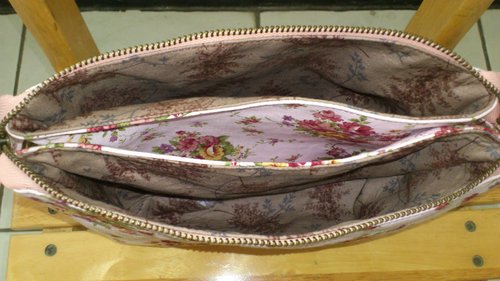 13 . 裝上方口金 ,拉鍊收尾 , 縫合裡布返口