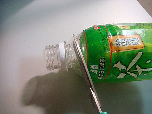 只要將廢棄的保特瓶在瓶口處剪一圈就大功告成了....