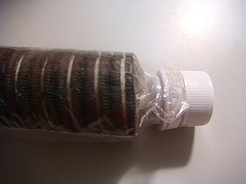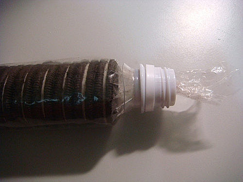 將沒吃完的食物塑膠袋穿過瓶口...