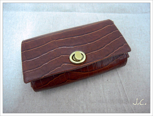 三層式的皮革手拿包。